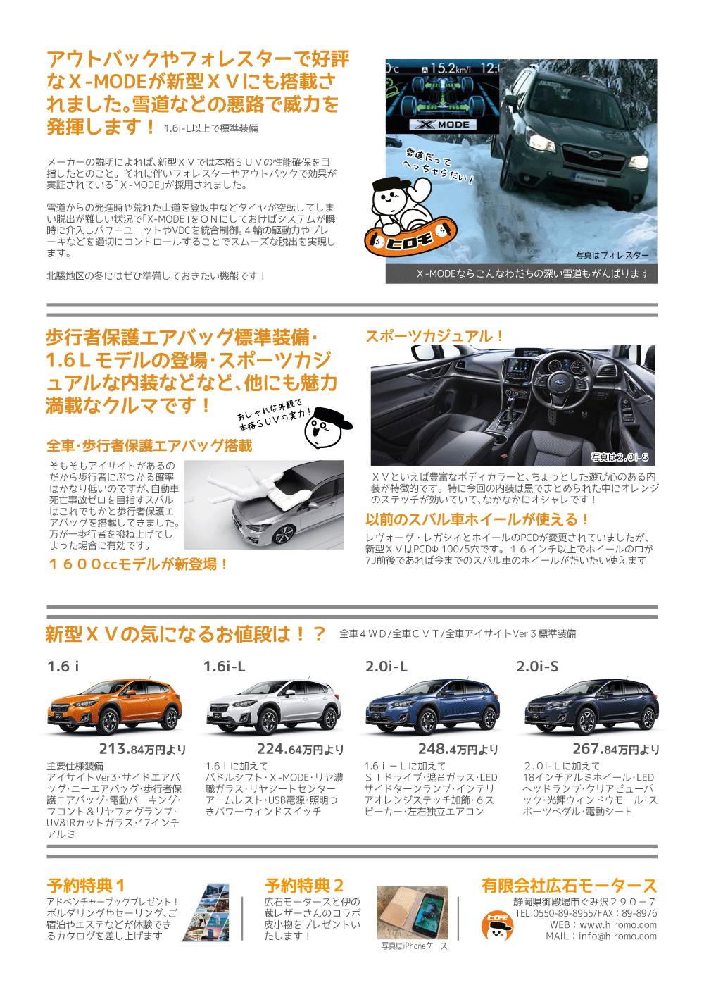 2017/3/9より、新型スバルXVの予約が始まっています。