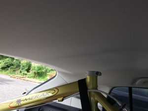 他に問題は?SGP化されたボディは旧型比薄い形状。燃費にも寄与してくるのでしょう。でも天井との隙間って?古い530mmホリゾンタル車はシートチューブが現代のに比べると長いのですが、画像の通り特に問題ありません。スローピングなら尚、安心です。