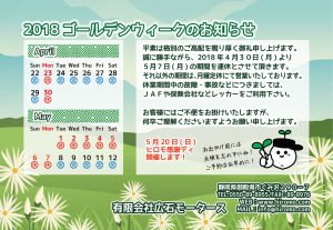 安全運転で楽しいゴールデンウィークをお過ごしください!