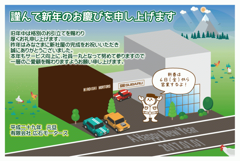 あけましておめでとうごいます! 2017/01/01 旧年中はひとかたならぬご愛顧にあずかり、誠にありがとうございました。 昨年は、みなさまに新社屋の完成をお祝いいただき、誠にありがとうございました。 本年も、ますますのサービス向上に、社員一丸となって努めて参りますので 一層のご愛顧を賜わりますようお願い申し上げます。 共有:シェア クリックして X で共有 (新しいウィンドウで開きます) X Facebook で共有するにはクリックしてください (新しいウィンドウで開きます) Facebook