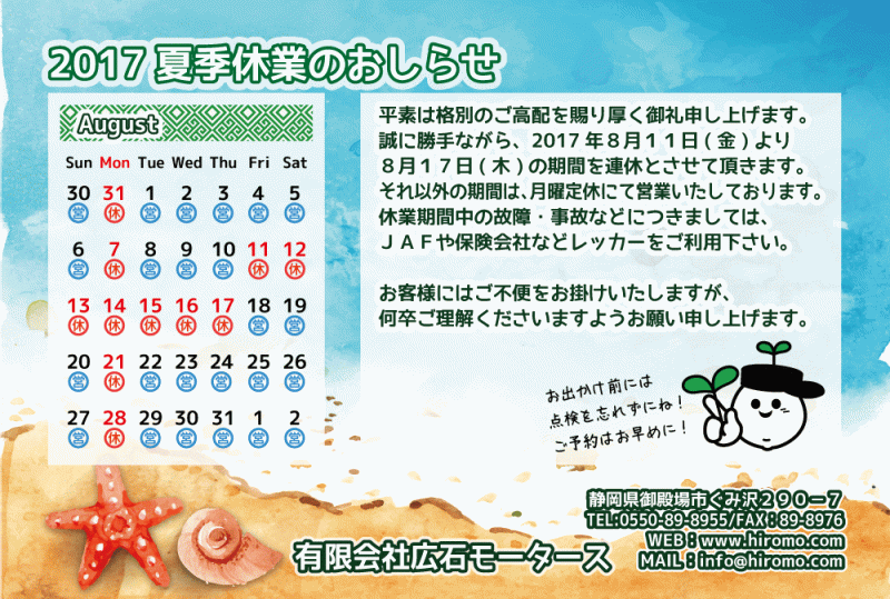 日頃より、「有限会社 広石モータース」をご利用いただき、誠にありがとうございます。